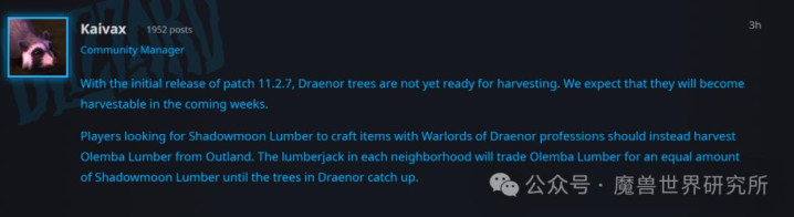 11.2.7 版本初始上线阶段,德拉诺的树木暂未开放采伐。我们预计在未来几周内,这些树木将解锁采伐功能。
